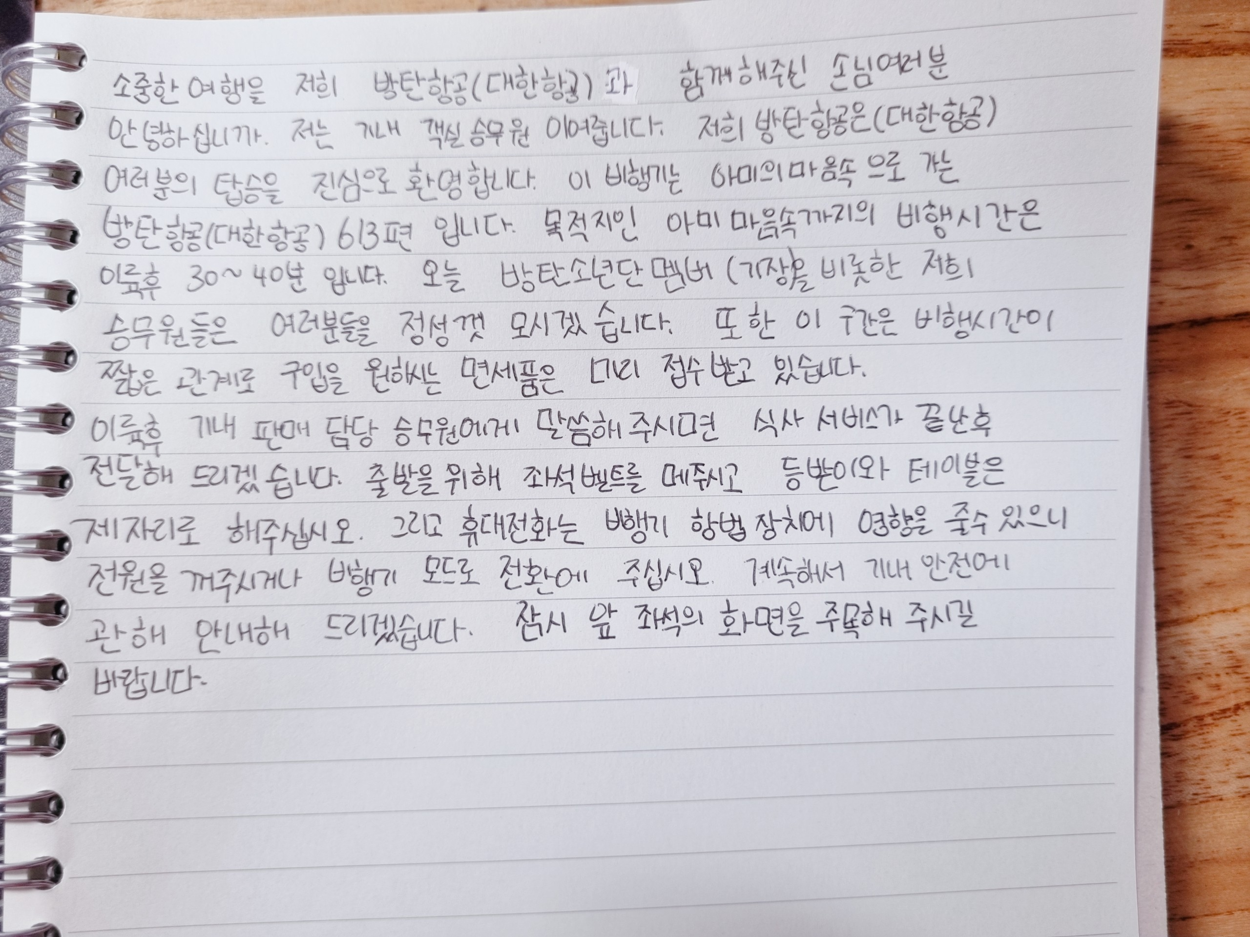 그..기내 안내방송 어떻게 하시는지 궁금해서