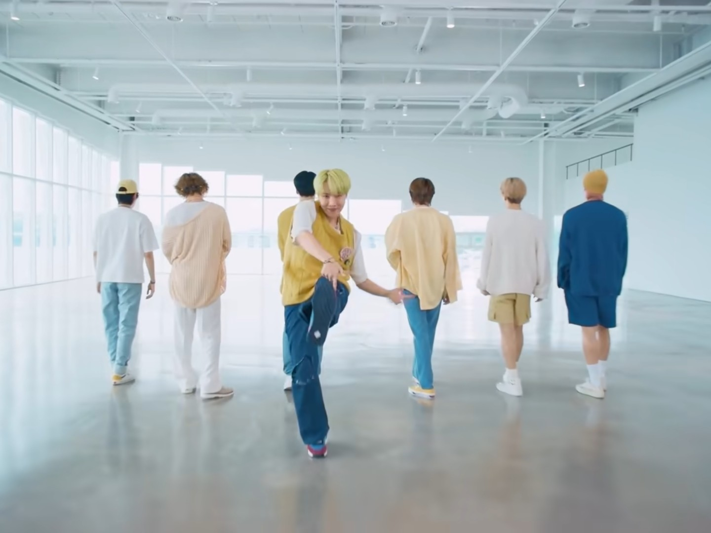 그 때 남준이와 석진이와 윤기가 내 뒤에 와서 버터를 추고 있었다
