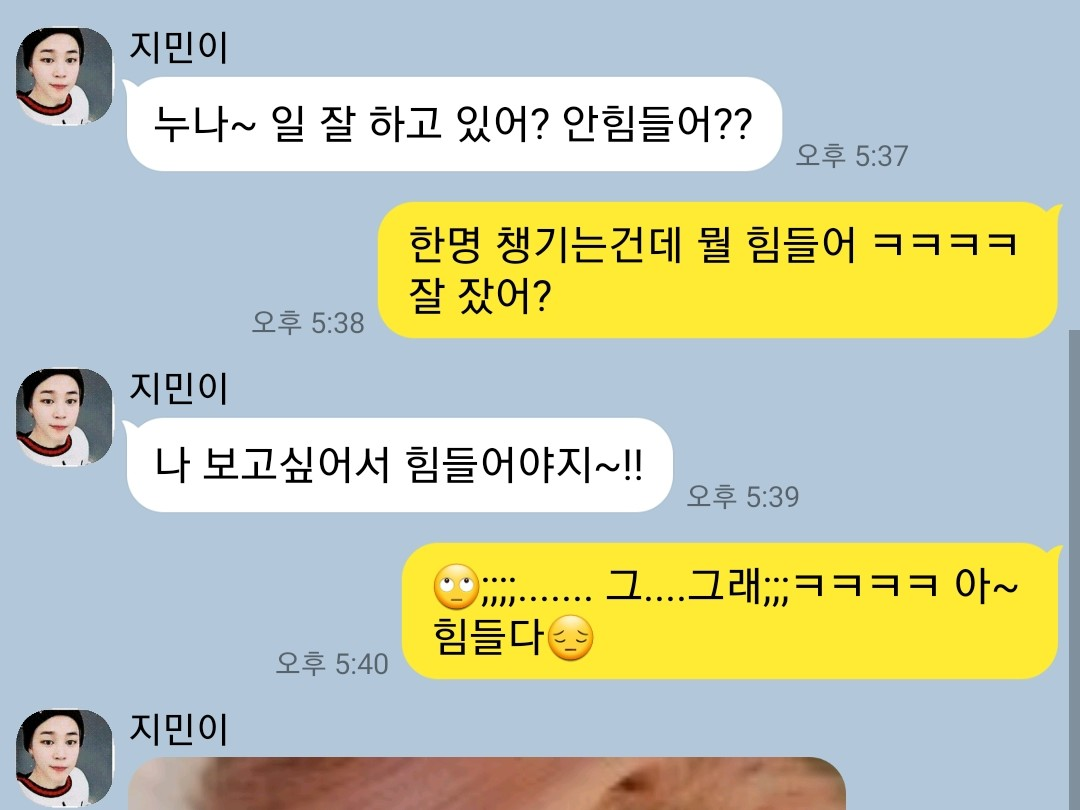 아~~ 역시~!! 응원감사합니다😊 지민이는 자나봐요 연락이 없는거 보니 ㅎㅎㅎㅎ