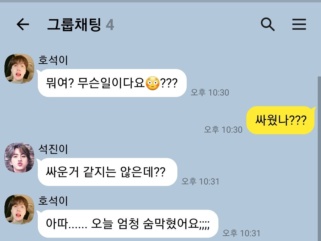 🐥 아...... 진짜...... 저번에 윤기형한테 짜증낸거 처럼 또 짜증내면 안되는데.......🤦♂️(303화 다툼)