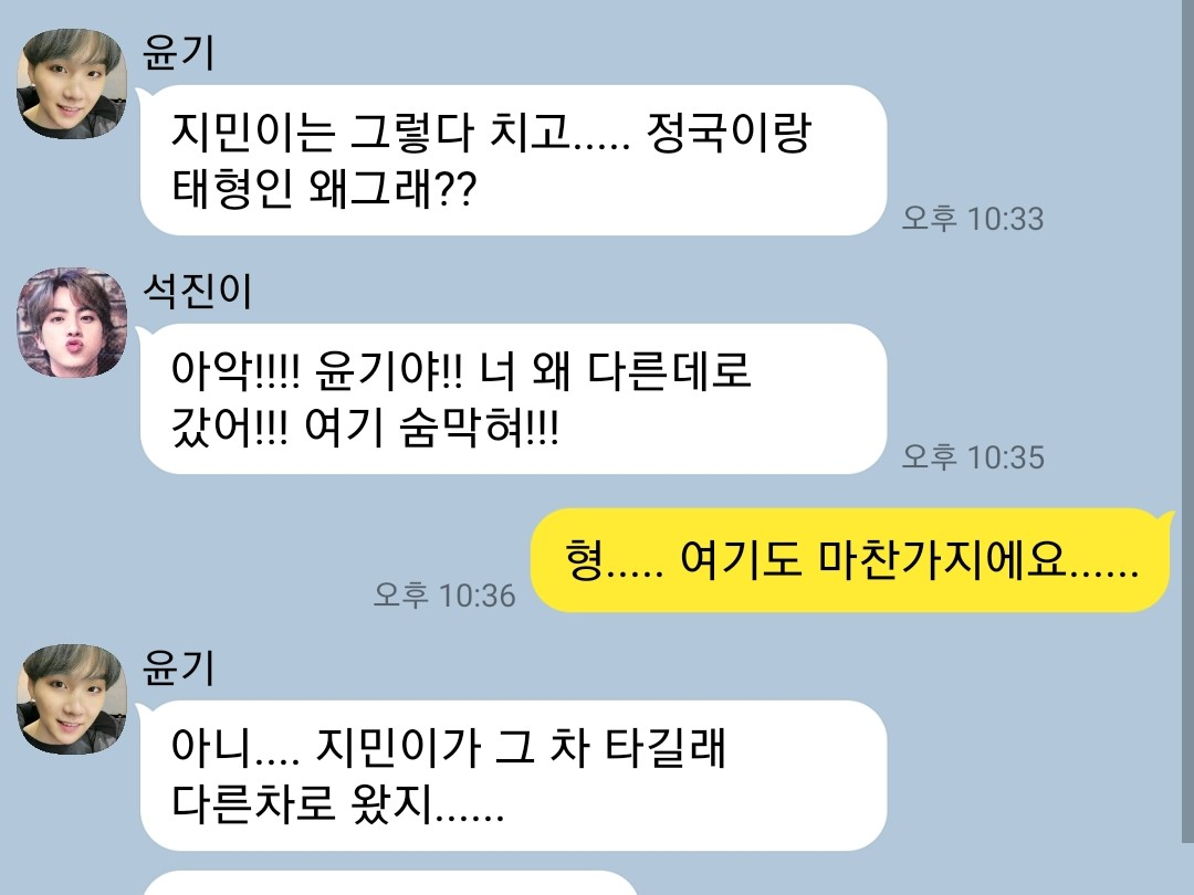 옆에 지민이도 있었고 태형이도 있었어요~ 저는 저희집 간건데 정국이가 형들 데리고 따라온거에요 시장가고 싶다고......