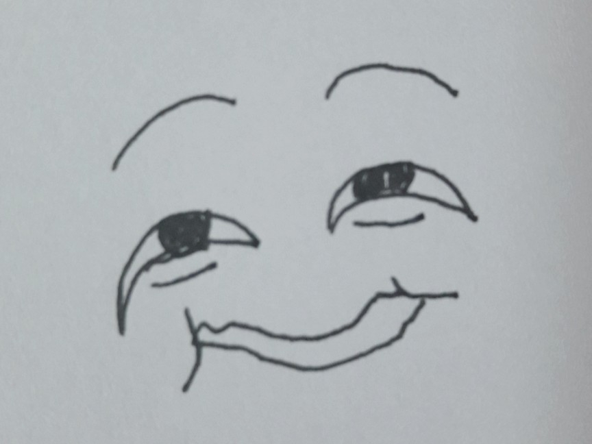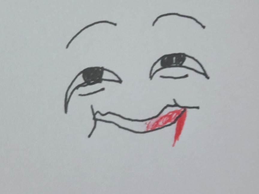 *눈을 반정도 감기게 웃는다 입도 최대한 옆으로 찢으며 웃는다