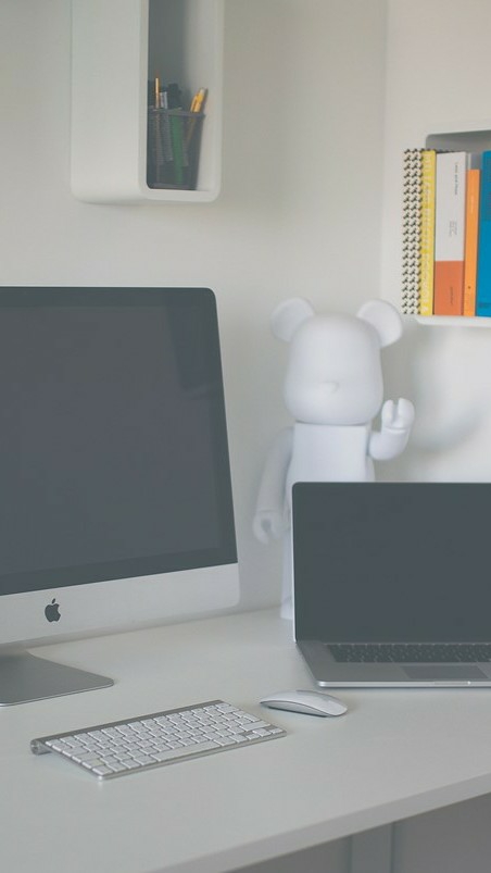컴퓨터 옆에있는 미키마우스 모양 피규어를 가르켰다