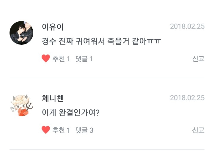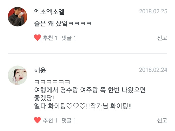 여러분 제가 이렇게나 예쁜댓글을 좋아합니다