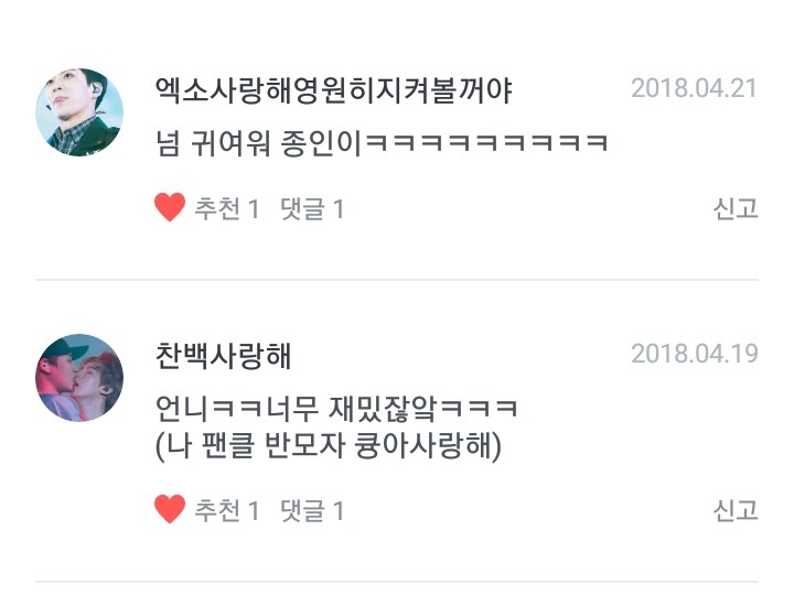 14 찬백사랑해님♡-재밌다니 다행이군 케케케♥ (feat.엑소사랑해영원히지켜볼거야님)-종인이는 항상 귀여웠습니다 -불변의 법칙 중-ㅋㅋㅋㅋㅋ♥
