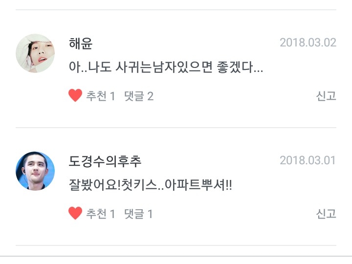 저 얼굴에 남자친구 생길까 걱정 많이 했거든...평생 안 생기면 어떻게 하나~했는데 호호호 경수한테 고마울뿐이야~