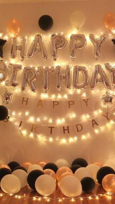 방 전체가 풍선과 장식품으로 꾸며져 있었다.