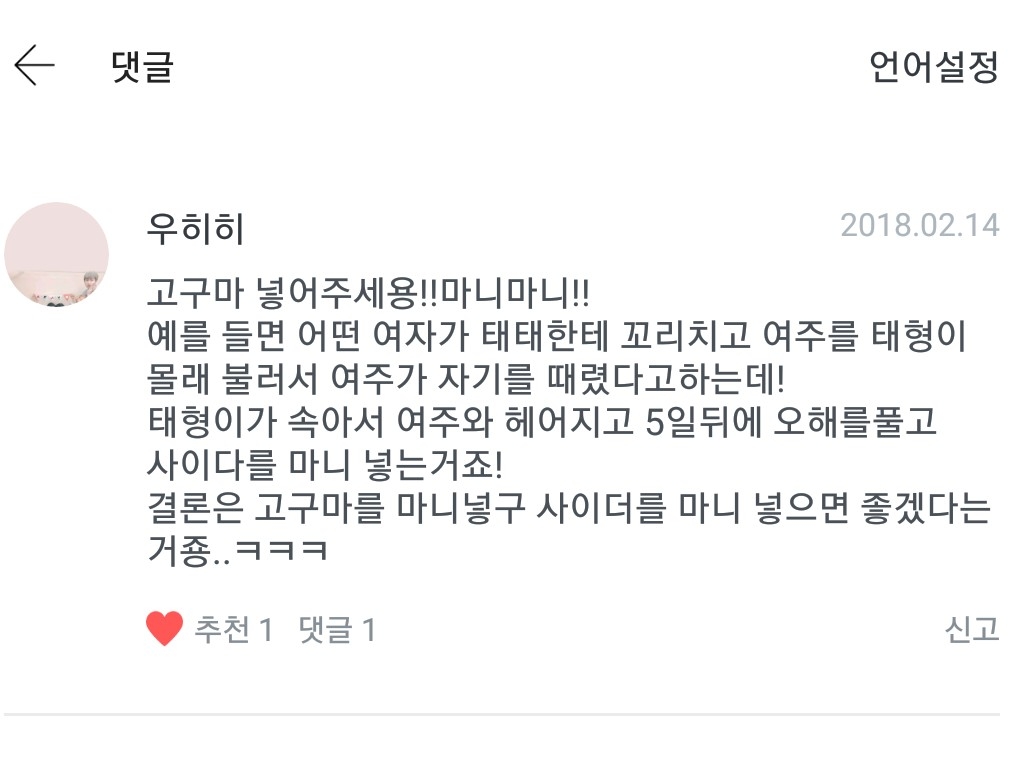 니 년 입에서 태형 오빠 이름 나오는 거 역겨우니까 그만해