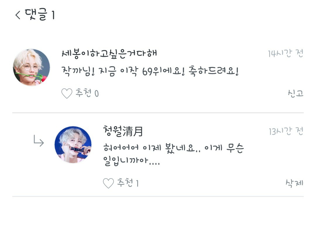 응, 죽어도 안 믿기지만 여주 울리지만 마라, 그땐 그냥 다 뒤지는 거야(정한제외