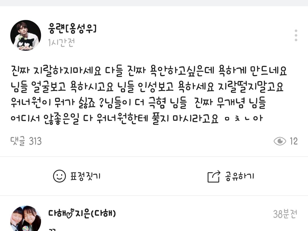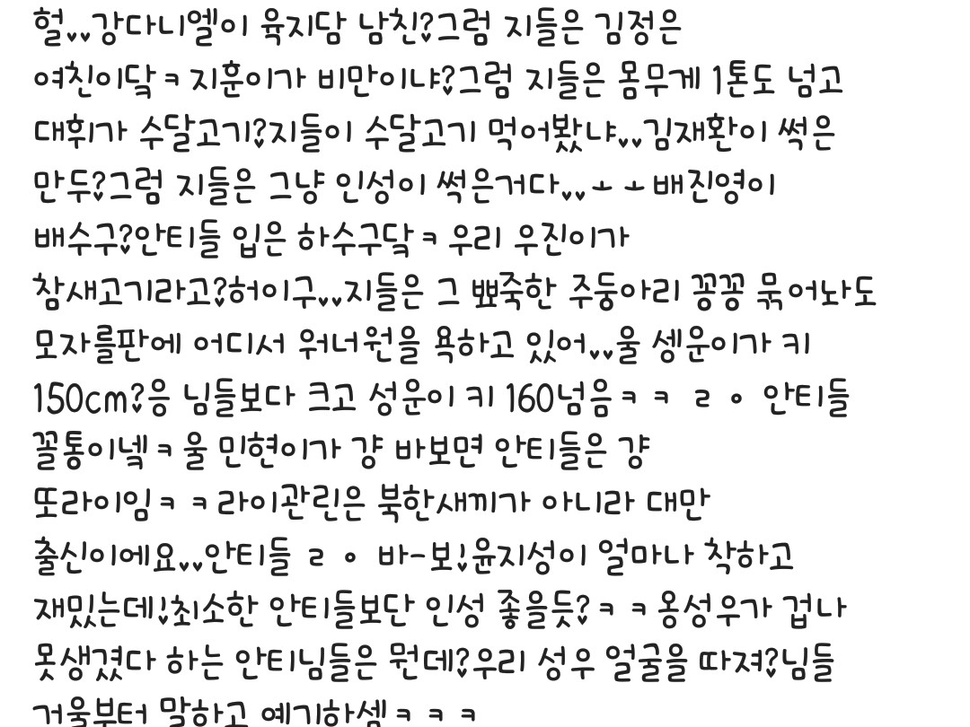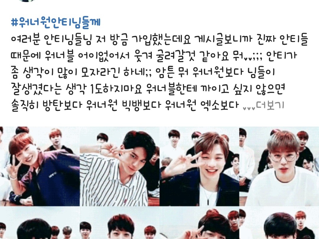 워너원 안티들 실환가요?(이번화는 스토리가 아닙니다)