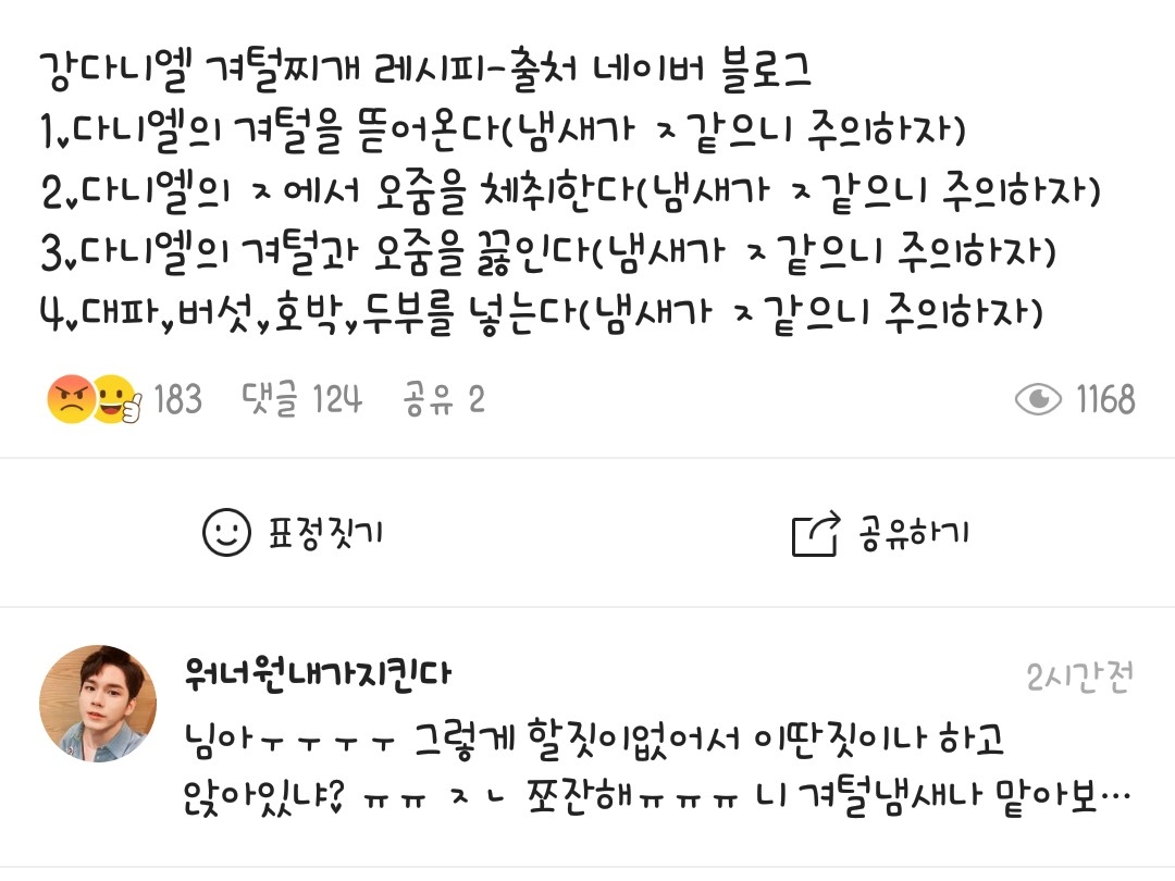 하하 냄새가 ㅈ같다니 니들 생각은 안하니 새끼들아? 워너원 내가지킨다님 너무 감사해요ㅠ