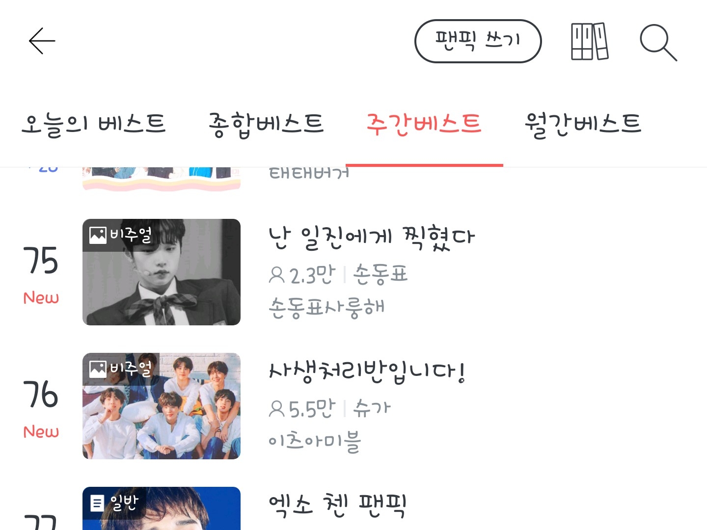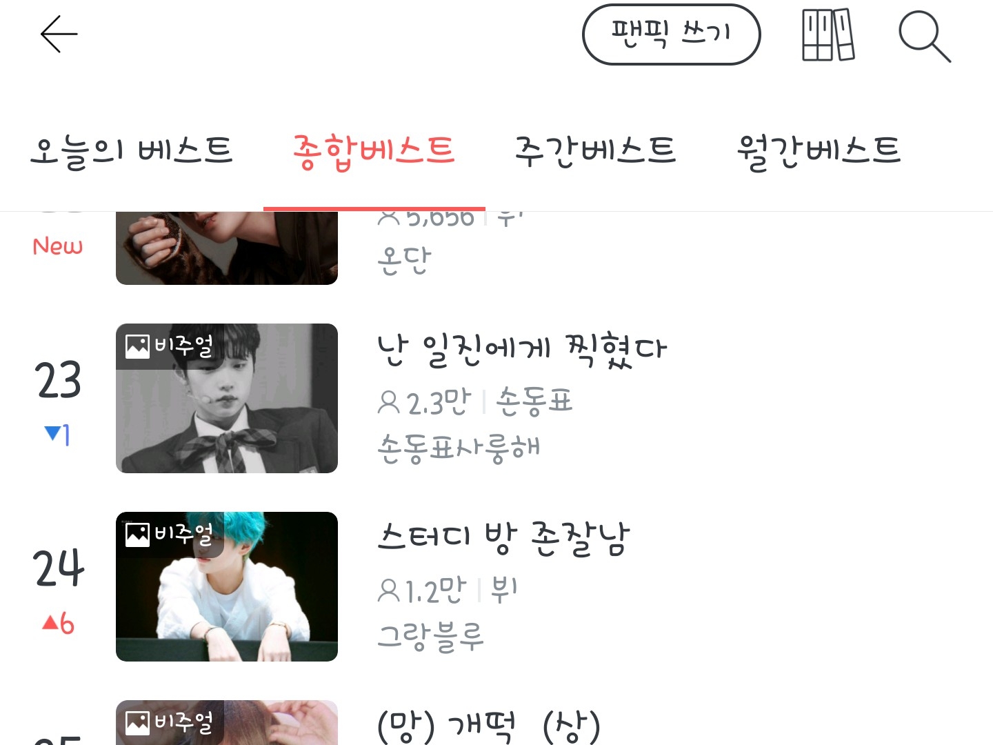 제가 팬픽볼게 없어서 순위권을 보는데...
