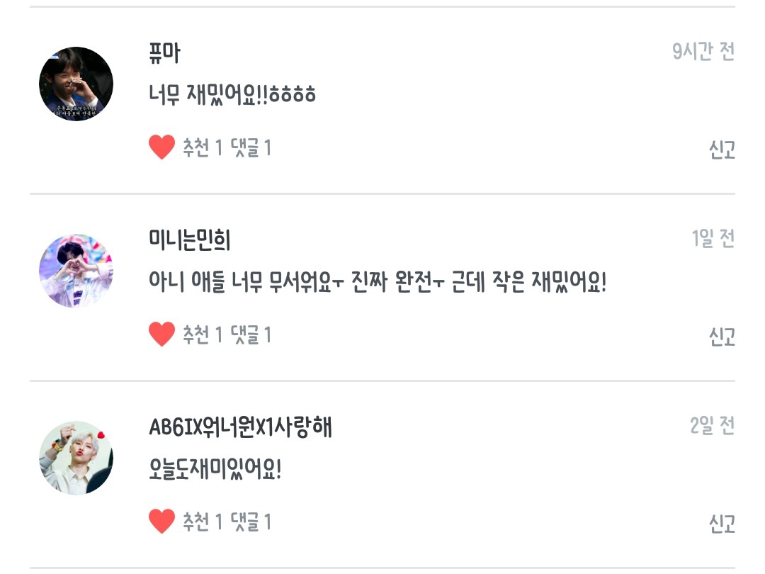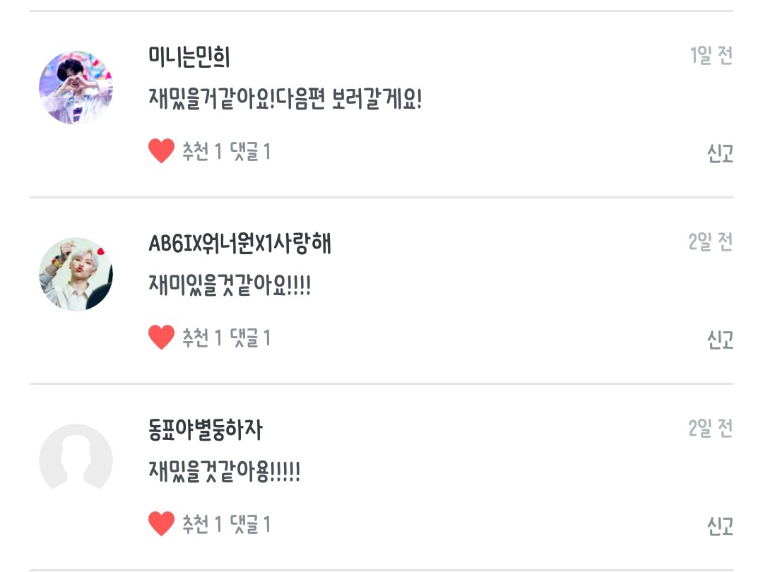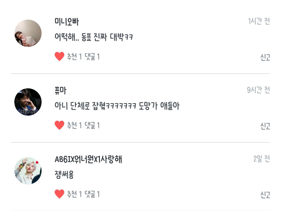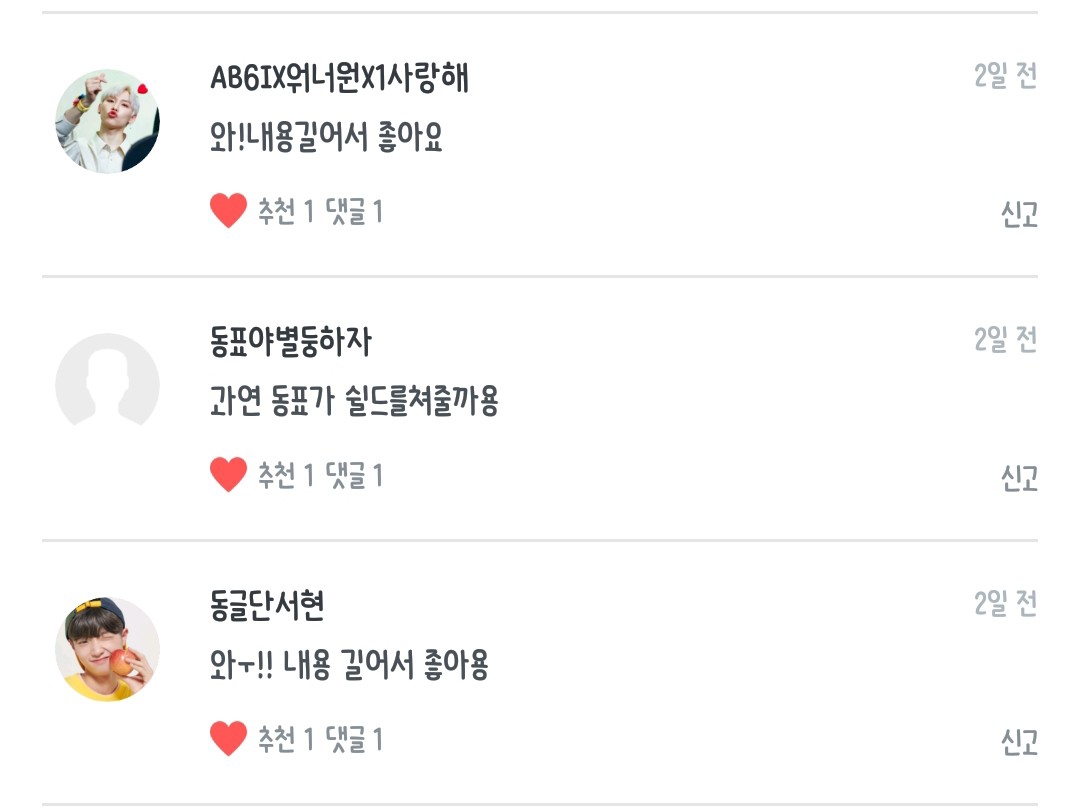 동글단이진님 동표는너무나도귀여웡님 AB6IX워너원X1사랑해님 choe jeongmin 185님 Wlals50300677님