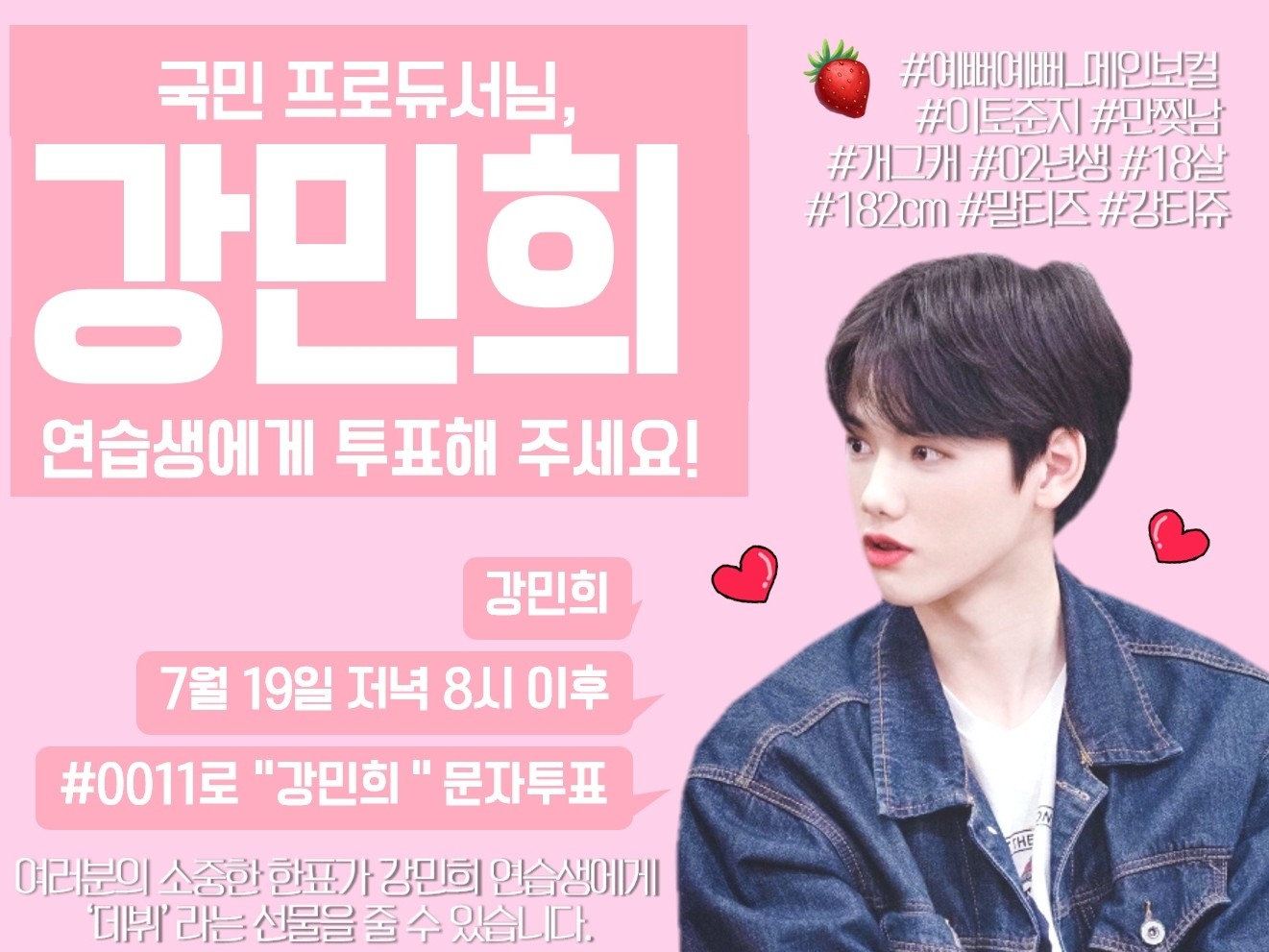 이번주 금요일 저녁 9시에 #0011 로 문자투표 딱 한번만 해주시면 마찬가지로 그분 계신 쪽으로 절 하겠습니다.