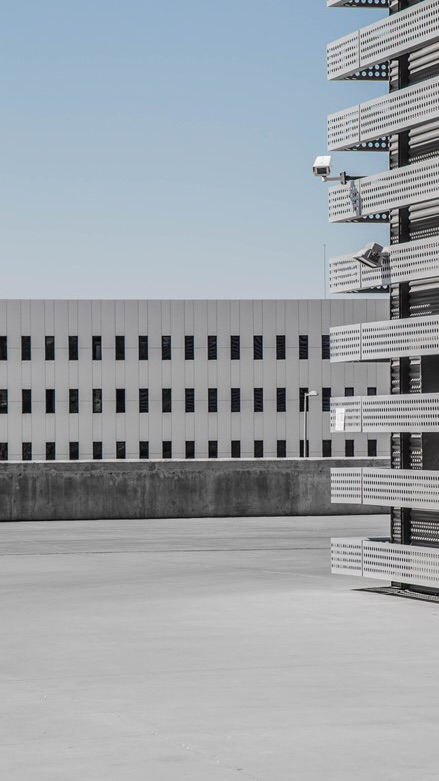 몸의 무게를 난간쪽으로 실어 건물아래를 보았을때