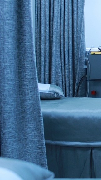 동현이가 침대에 앉아있는 웅이를 향해 한쪽 무릎을 꿇었다