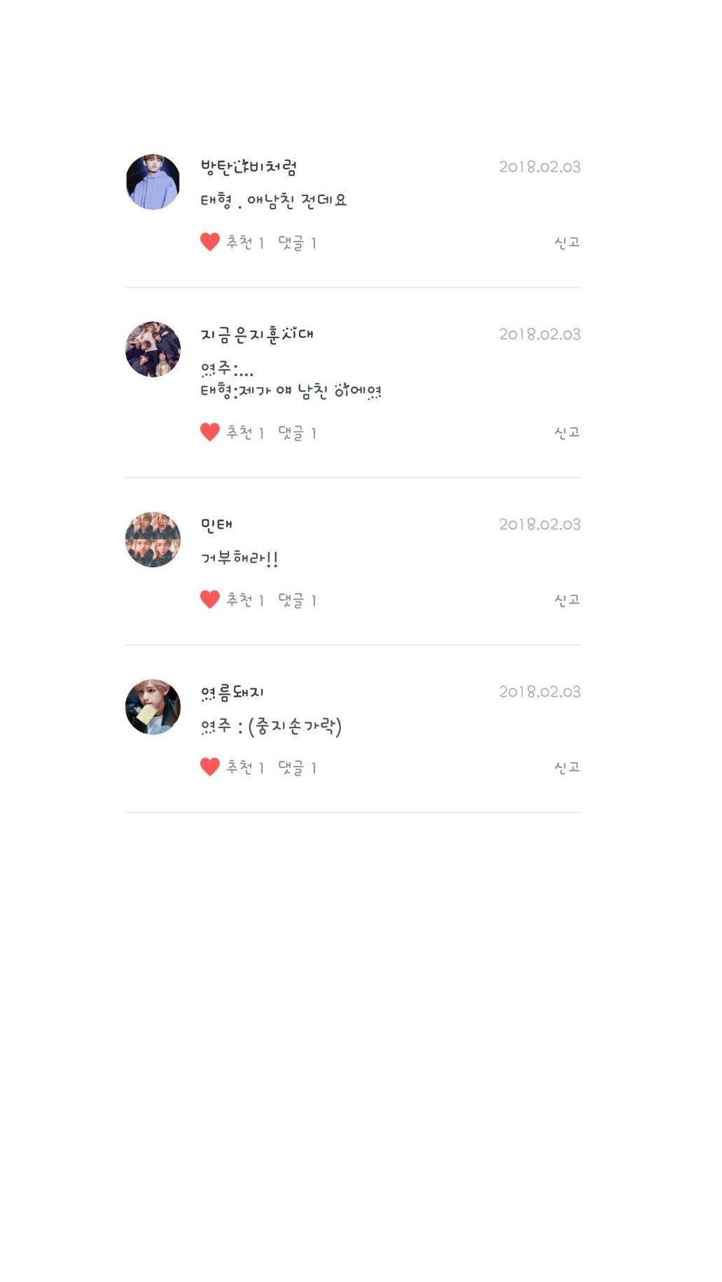 여름돼지님, 민태님, 지금은지훈시대님, 방탄나비처럼님
