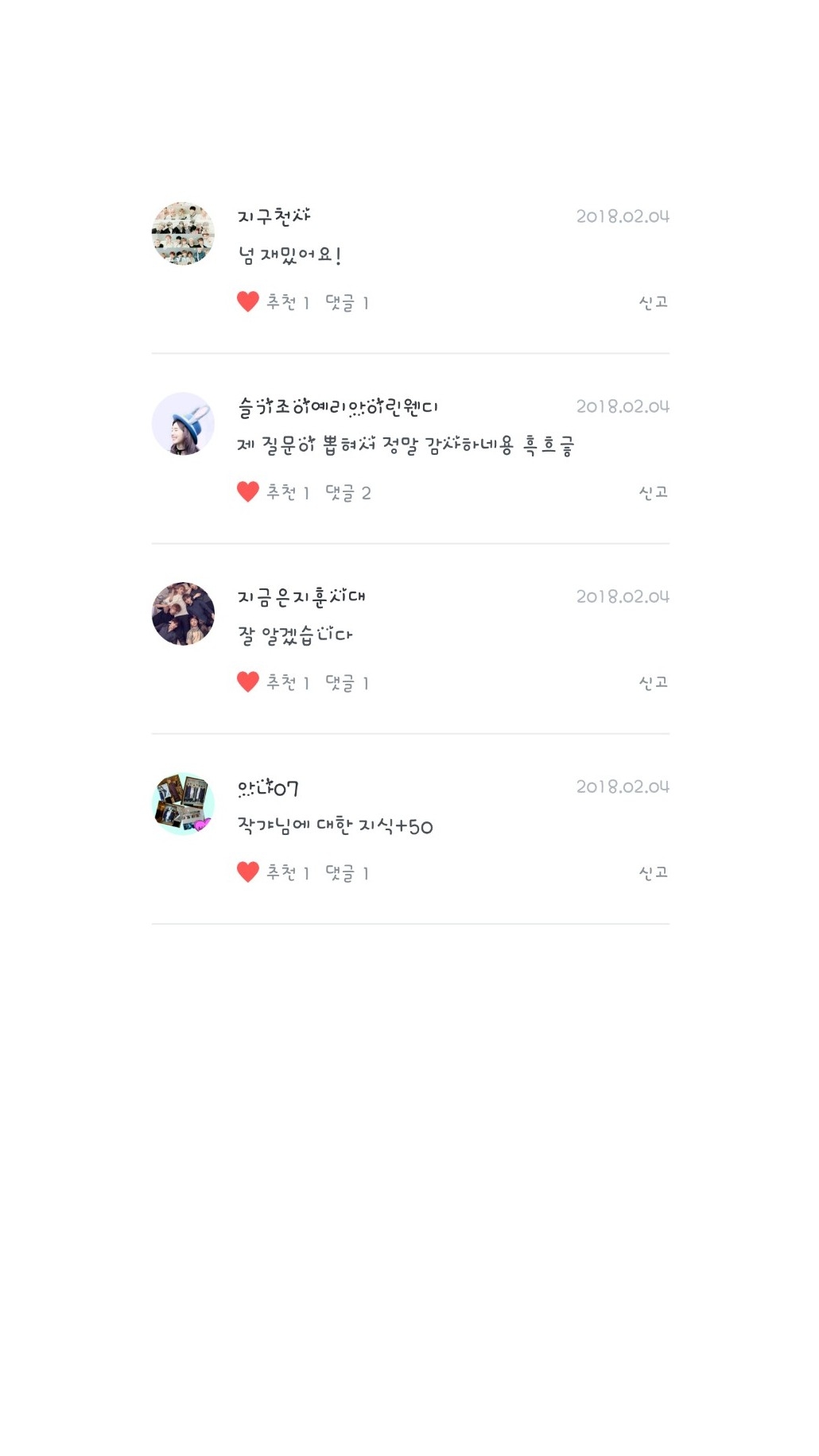 아나07님, 지금은지훈시대님, 슬기조이예리아이린웬디님, 지구천사님