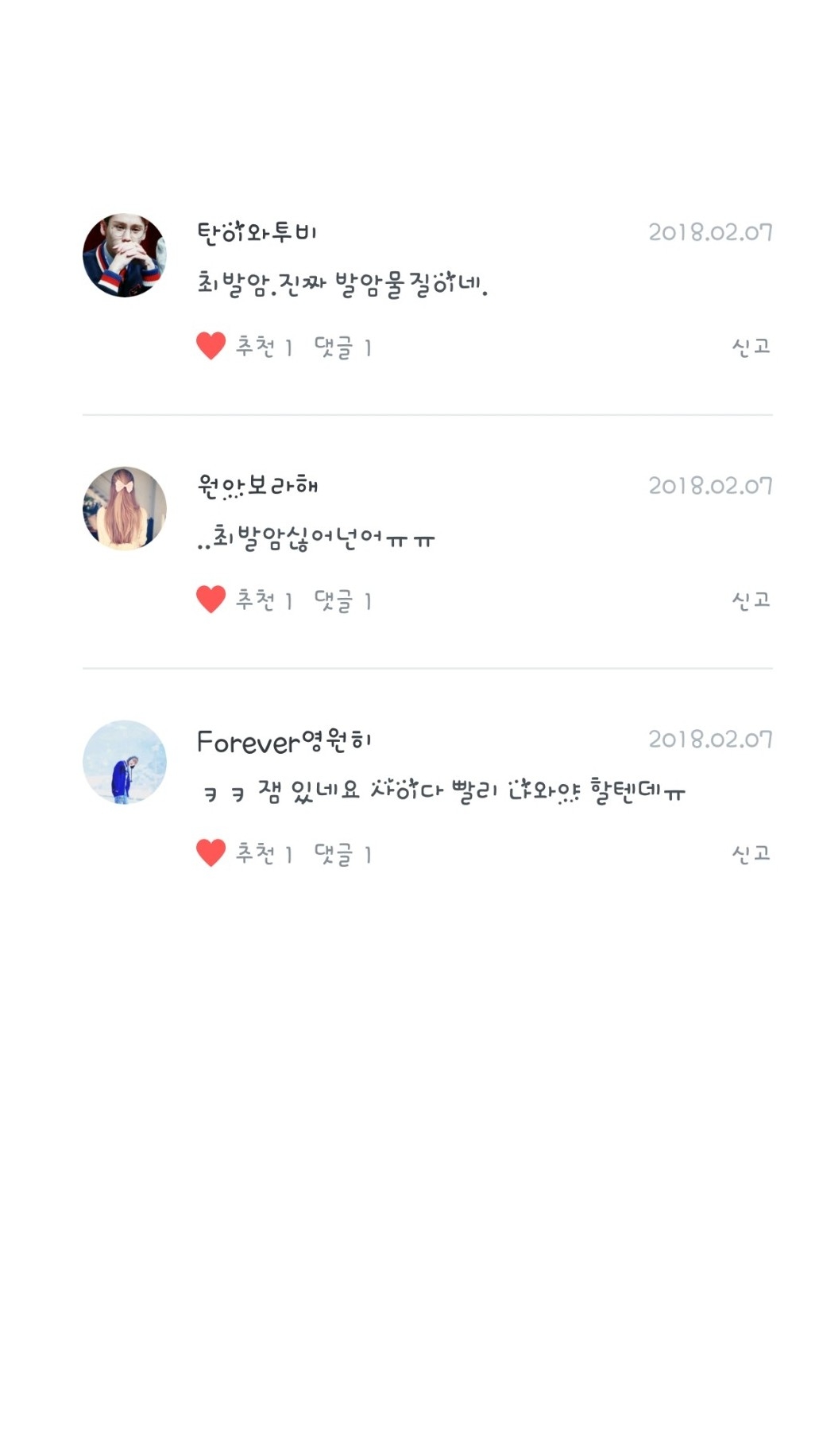 아...아무튼 오늘도 기분 좋은 댓글 보러가시져!