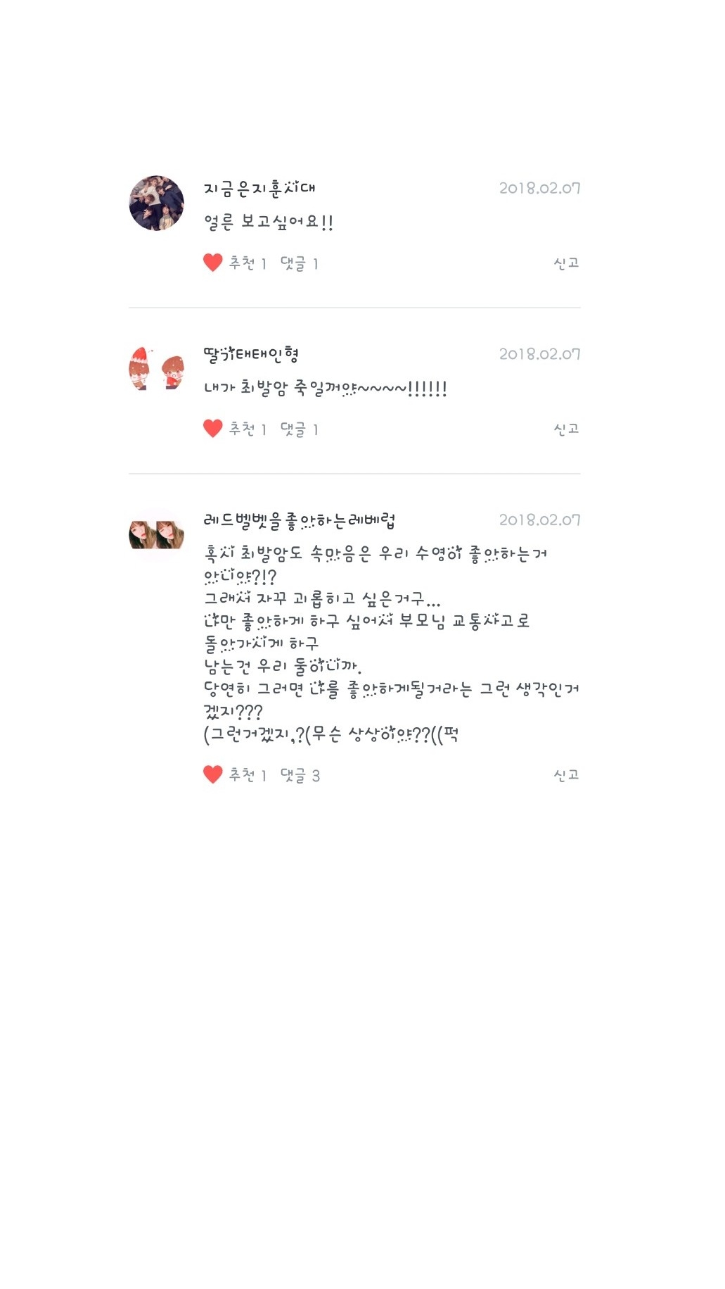 레드벨벳을좋아하는레베럽님, 딸기태태인형님, 지금은지훈시대님