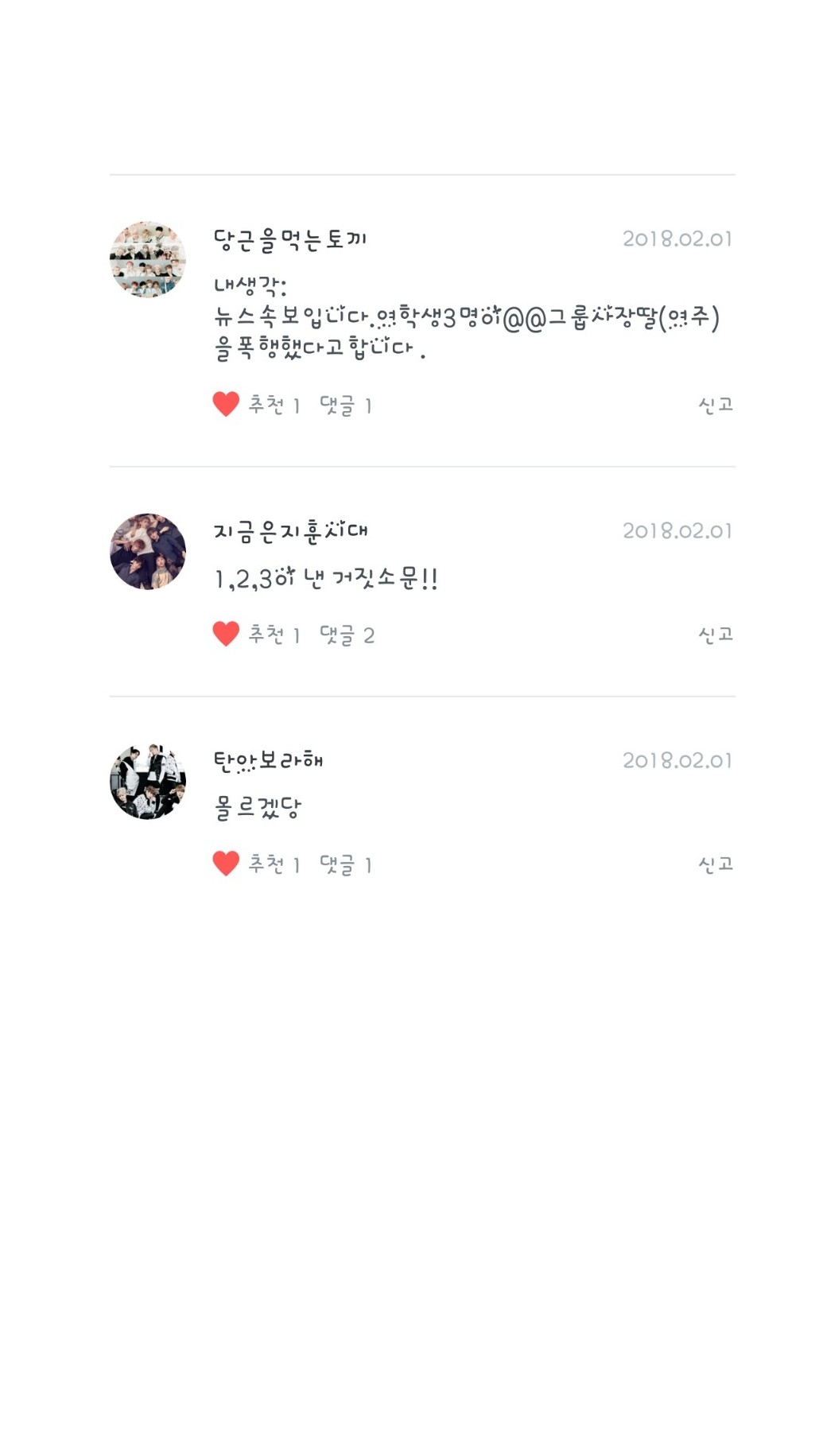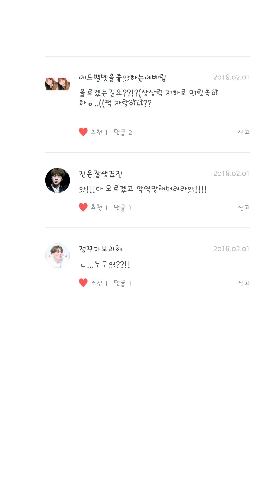 정꾸가보라해님, 진은잘생겼진님, 레드벨벳을좋아하는레베럽님