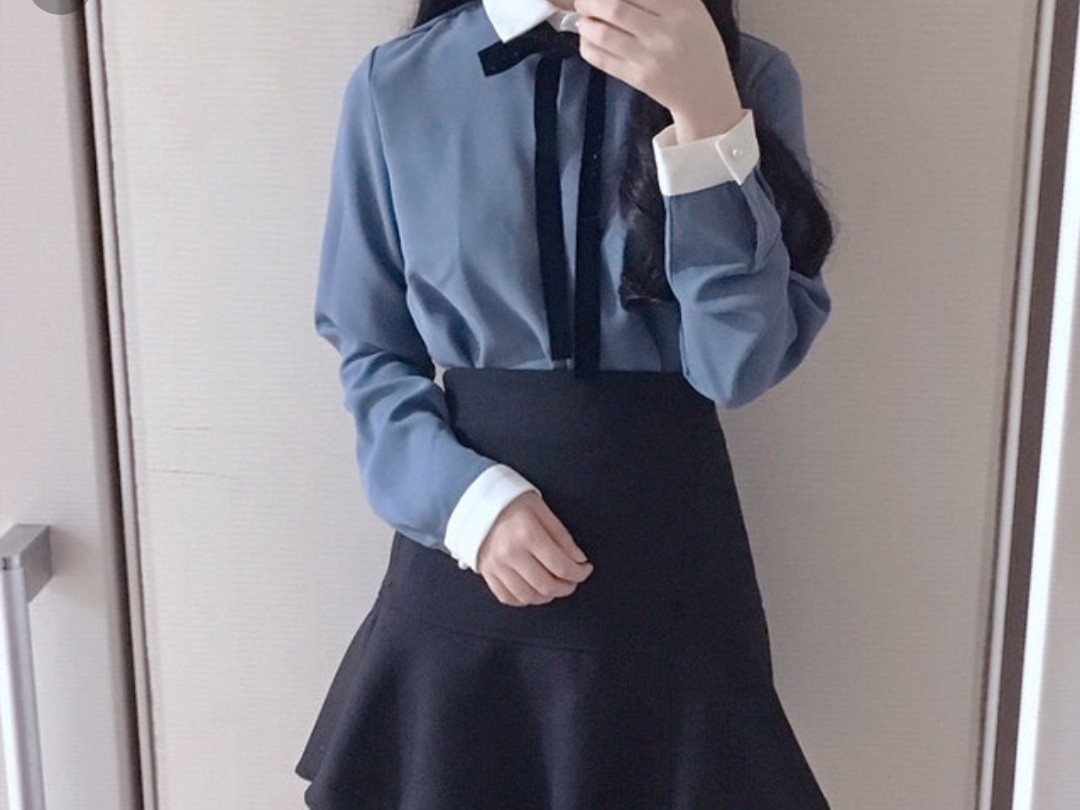 나는 내가 좋아하는 블라우스에 치마를 입었다.