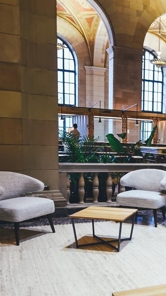 우리는 모두 호텔광장에서 모였다.