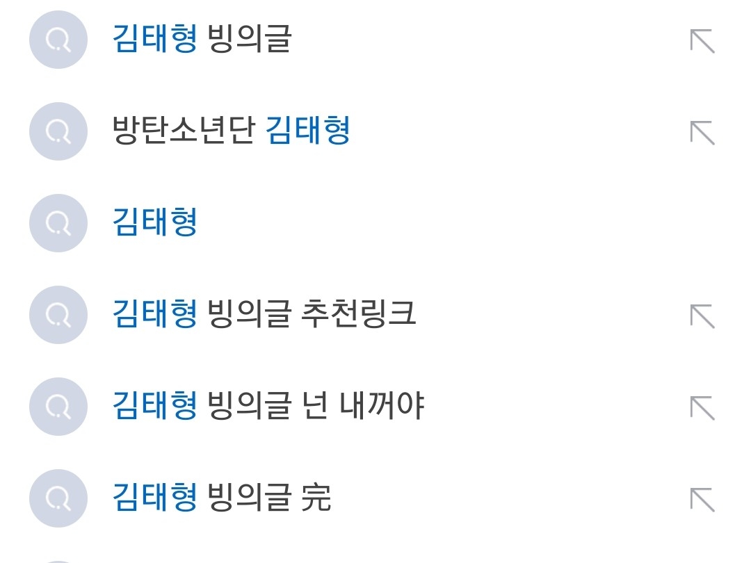 저거 검색 안클릭 하고 그냥 이름만 치면 나오는거에요 방탄소년단 김태형 막이런식도 김태형이런게 먼저 뜨는게 아니라 빙의글이 먼저 떠요 말도 안되죠?