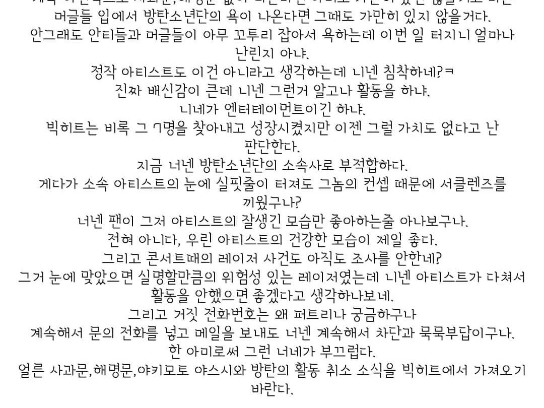 그리고 빅히트 이미들한테 던빌꺼면 이건만 알아두세여
