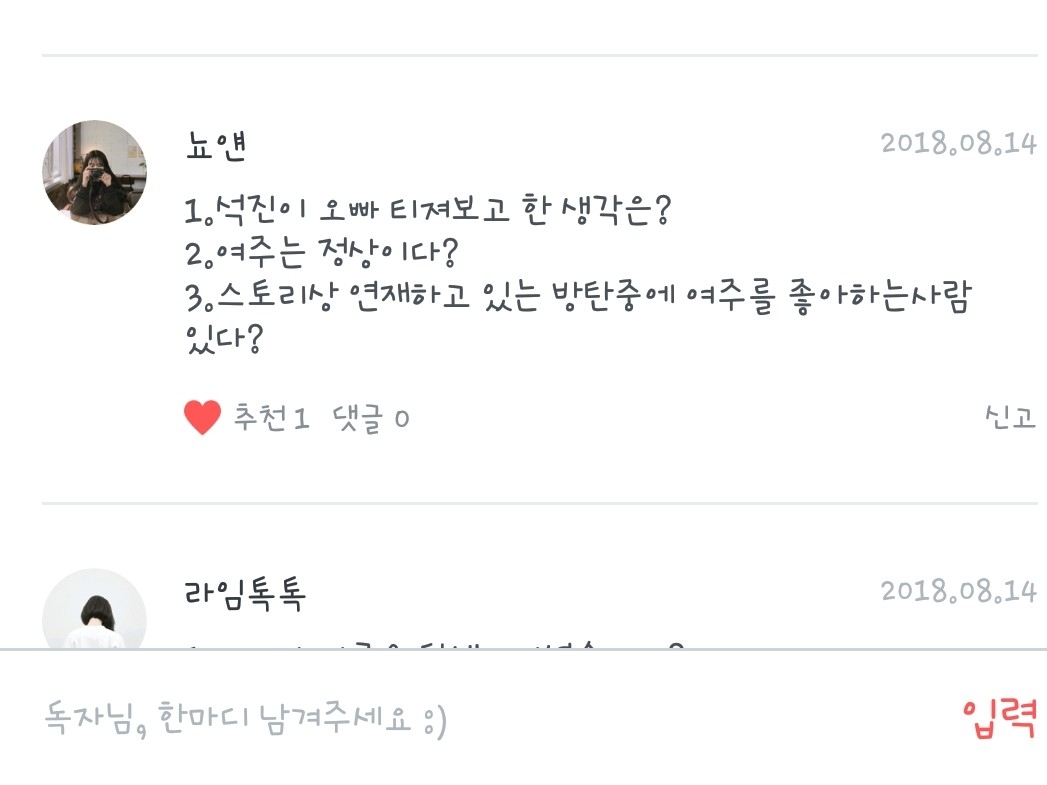 방탄여친님의 질문!