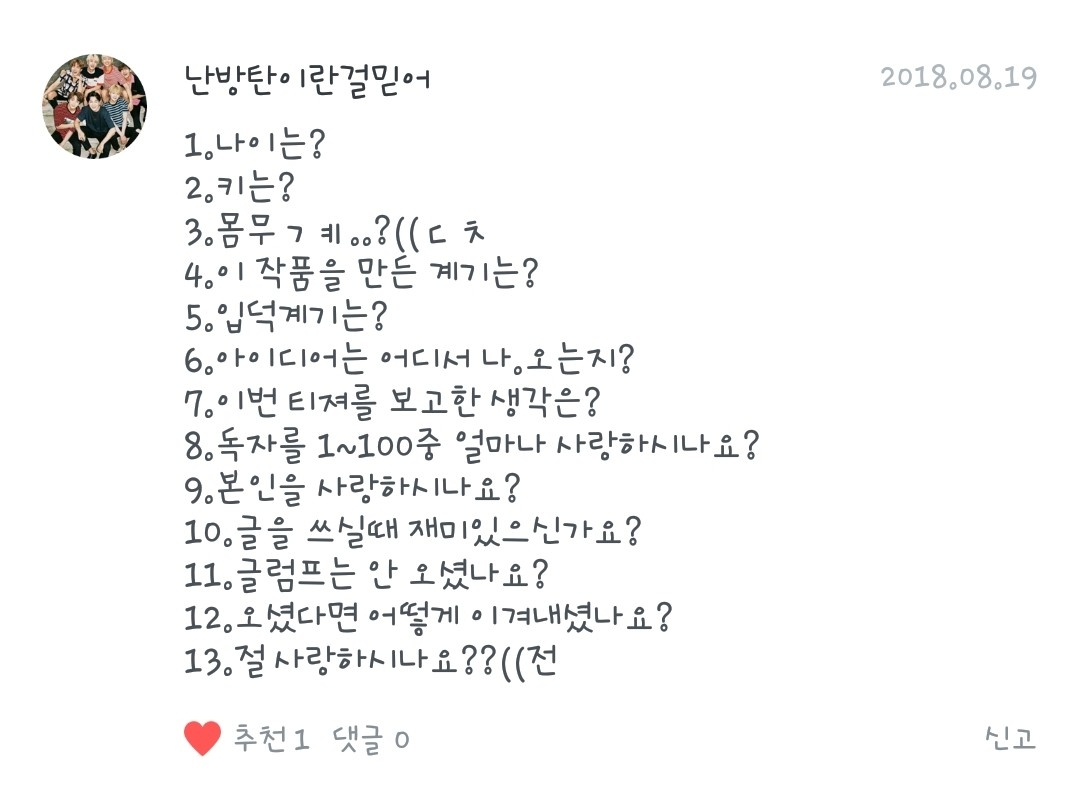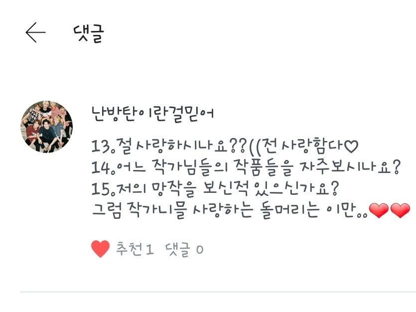 난방탄이란걸믿어님의 남은 질문!