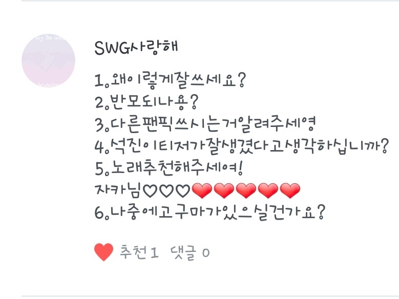 SWG사랑해님 질문! 저도 사랑해님 사랑합니다♡