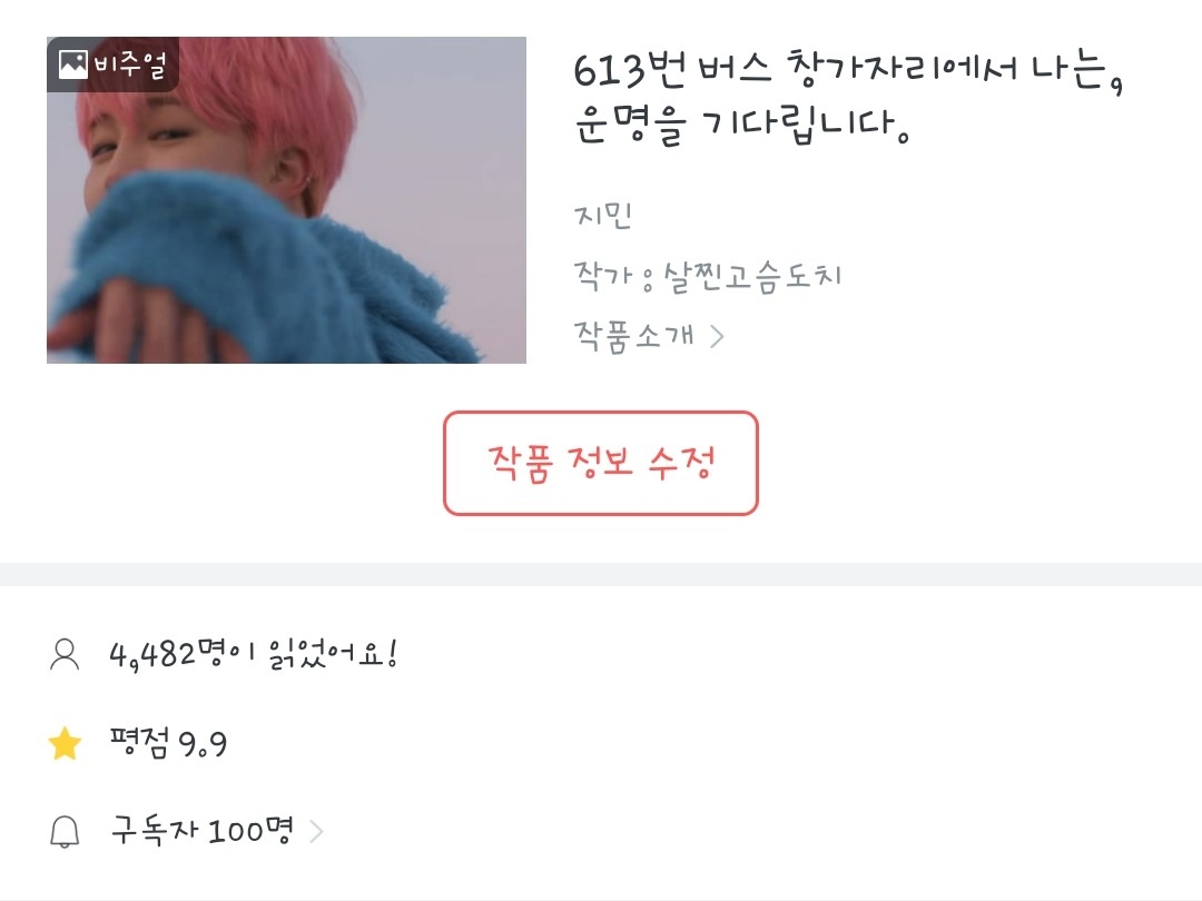 슬쩍 지민을 쳐다본 여주가 씨익, 씁쓸한 미소를 흘린 뒤에 버스에서 내렸다.