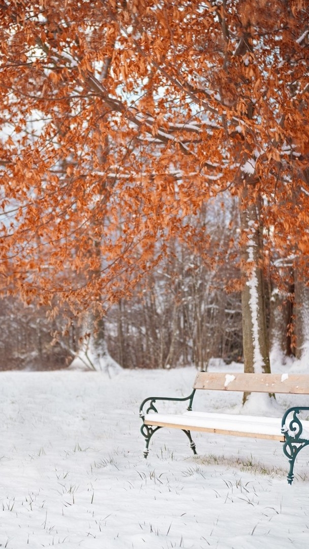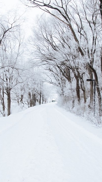 눈이 소복이 쌓인 길가를 나란히 걷는 두 사람,