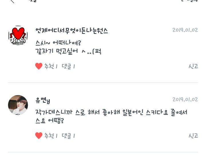 여러분! 여러분들의 애칭을 고르는 중에! 댓글에 2개의 애칭이 있더라고요