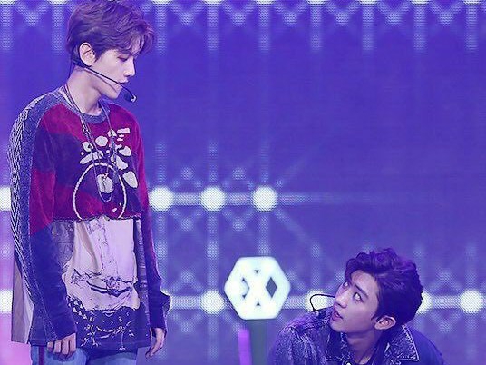 저때는 춤을 다 추고 힘들어서 앉아있었을 땐데 , 백현이를 올려다본게 이상하게 찍힌 듯 하다