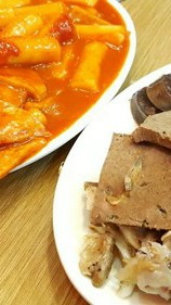 여주의 입속에 태형은 떡복이를 집어 여주의 입어 넣는다