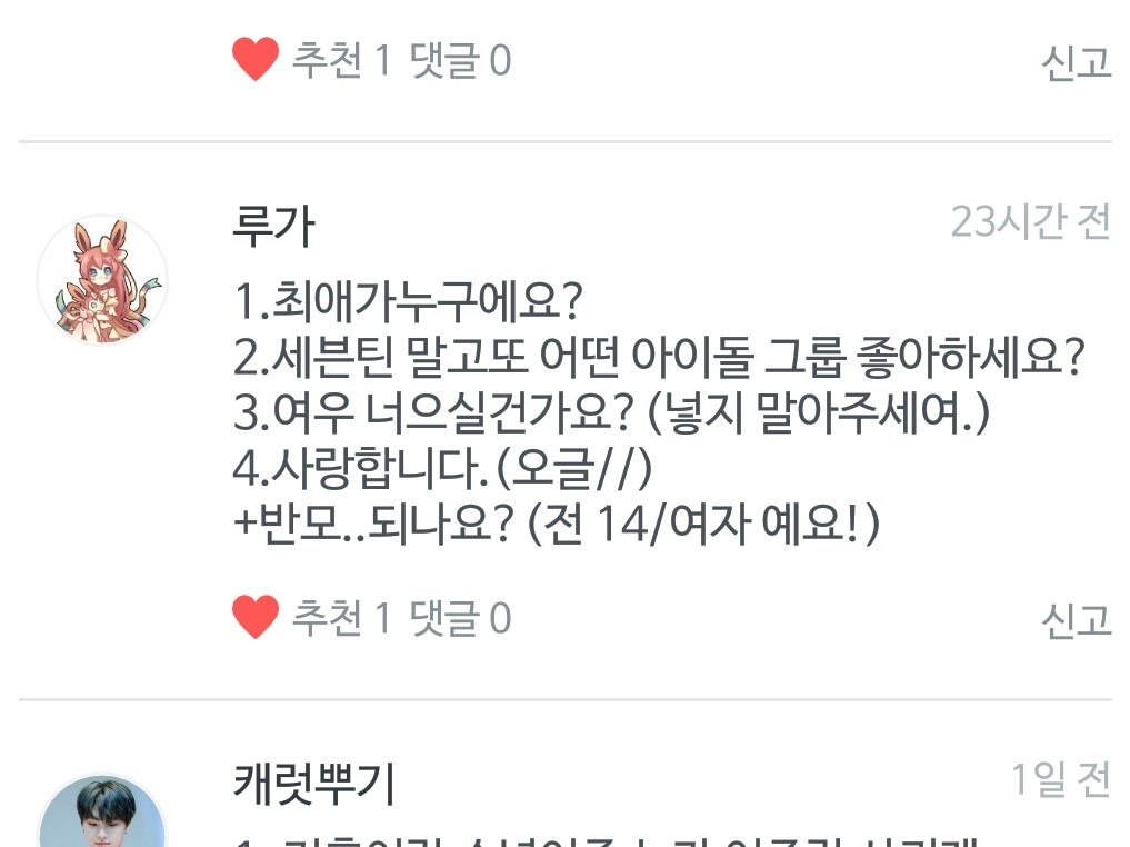 네!! 댓글에 나이랑 애칭 적어주시면 다 받아요♥