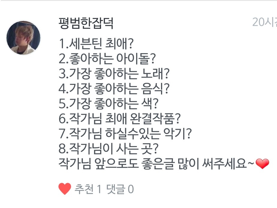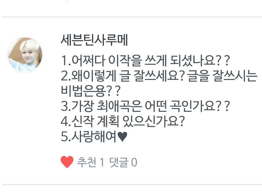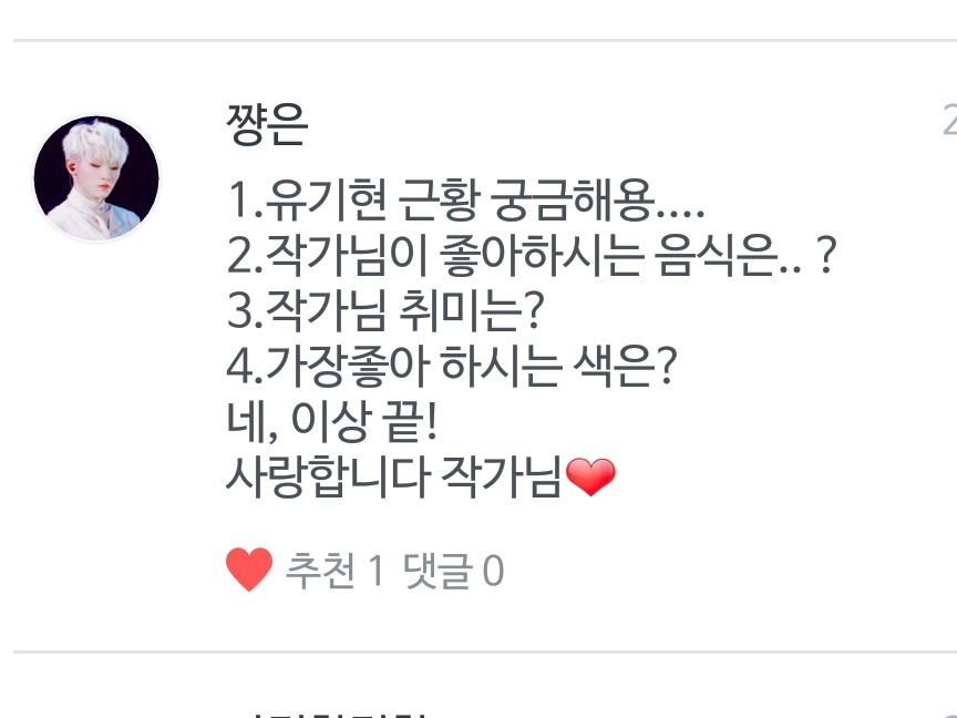 Q. 작가님 글 너무 잘 쓰세요♥