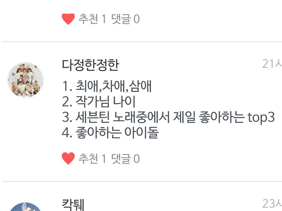 Q. 세븐틴 외에도 좋아하시는 아이들 말해주세요!