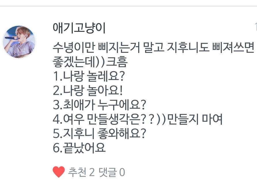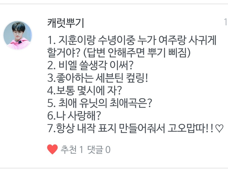 최애는 지훈, 차애는 수녕, 삼애는 워누입니당