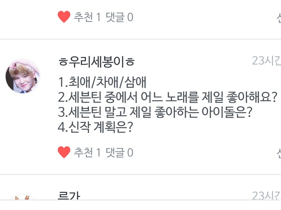 Q. 세븐틴 최애, 차애, 삼애는?