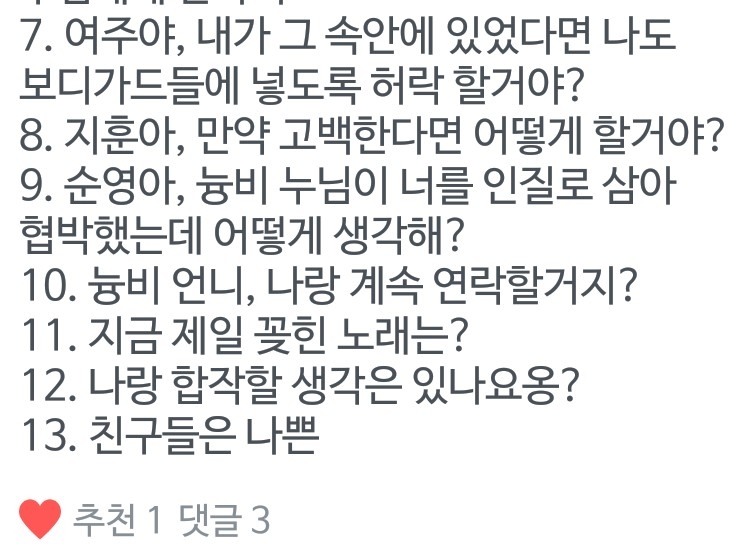 Q.여주야, 다른 멤버들에게는 관심 없어?