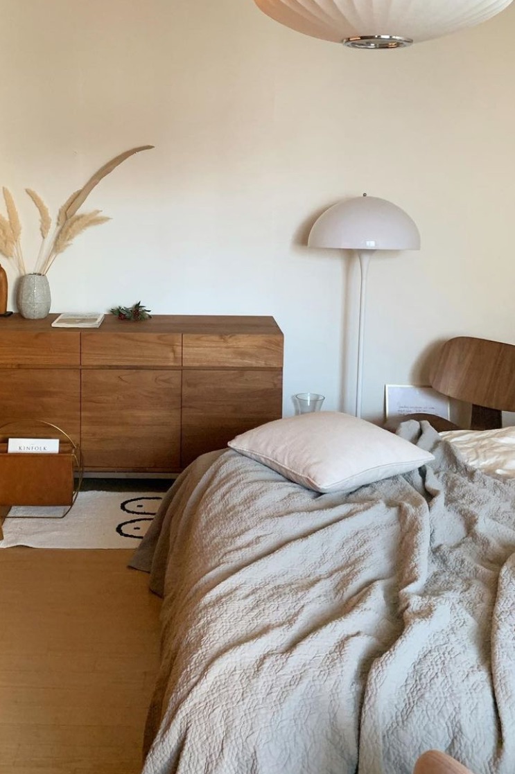 여주는 먼저 일어나서 핸드폰을 보고 있었다.