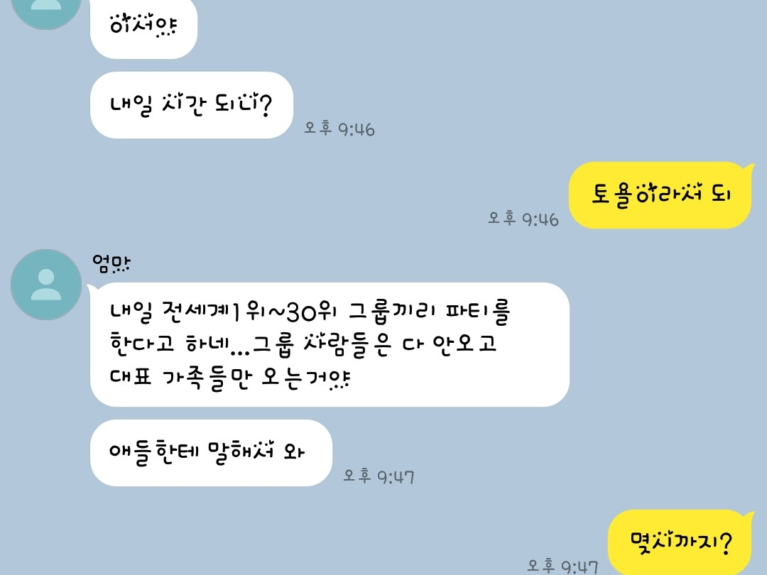 엄마가 내일 파티 있다는데?