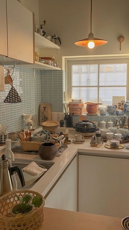 _부엌으로 오자 , 표정이 굳어지는 여주.