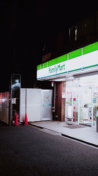 _늦은 밤 , 무언가를 샀는지 주머니에 넣곤 편의점에서 나오는 여주.