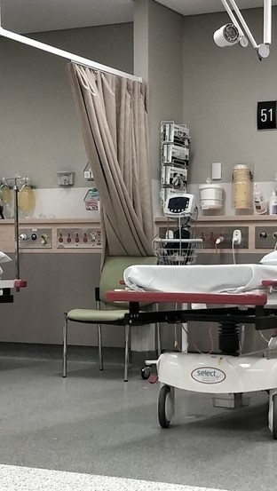 _여주는 침대에 앉았다가 , 일어나서 병실을 돌아다녔다가를 반복한다.
