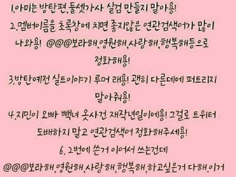 방탄분들이 수위글을 보고 정국이오빠는 울고 윤기오빠는 나가고 지민오빠는 정국이오빠 달래줬데요