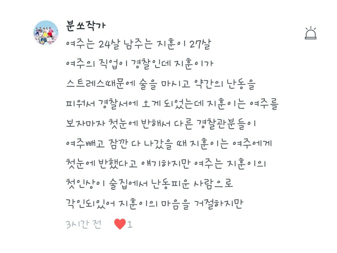 이젠 여주도 그렇게 매일 오는 지훈이 익숙해지고 하루라도 안 오면 혹시 무슨 일 있나..하고 불안해졌다
